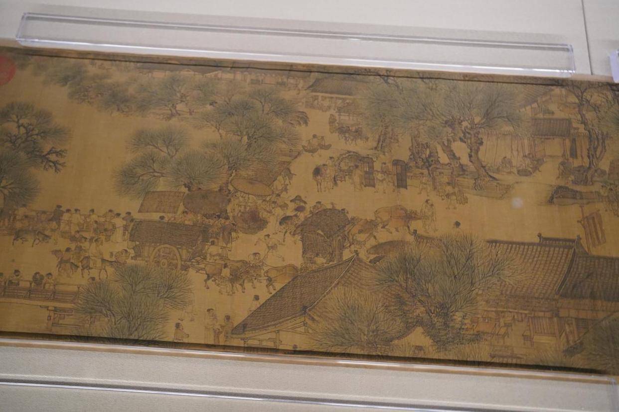 长卷刻画了北宋都城东京(今河南开封)汴河沿岸的生活景象。因为人物活动的时间是在清明前后,所以称之为《清明上河图》。画家以精细高超的用笔,将八百多各色人物,以及数以百计的树木、房屋、车船,布置在繁华熙攘的汴河两岸,兼具重要的历史文献和艺术价值。